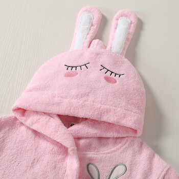 竹一百 纯棉儿童睡袍大童加厚浴袍男童女童卡通毛巾料家居浴衣 L 粉色