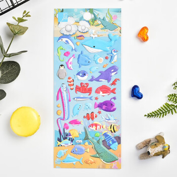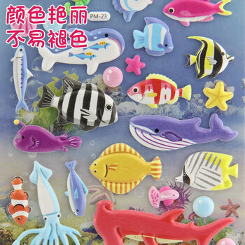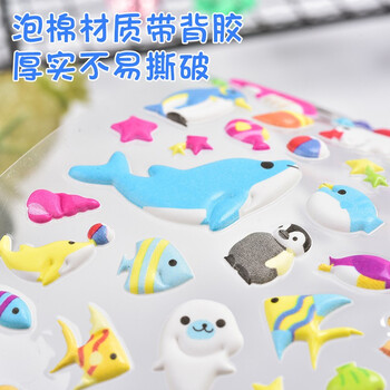 初格儿童贴纸贴画玩具男女孩动漫卡通3d立体泡泡贴海洋鱼拼豆