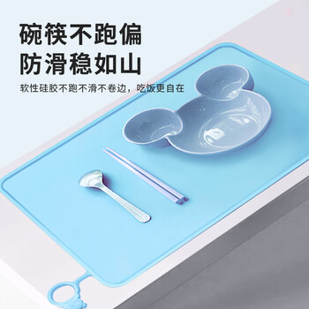 钟爱一生小学生餐垫儿童防水防油防滑隔热硅胶垫一年级午餐垫蓝色40x30