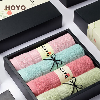 HOYO日本毛巾礼盒 A类纯棉荷花毛巾4条装柔软吸水家用公司团购定制