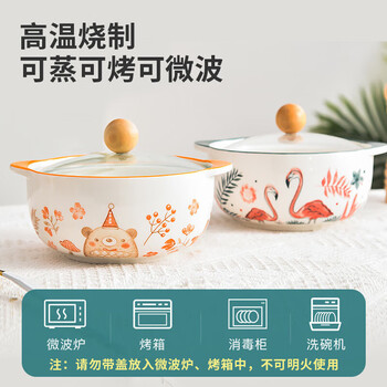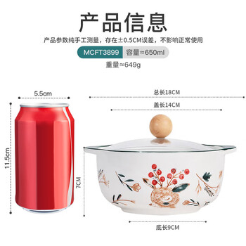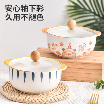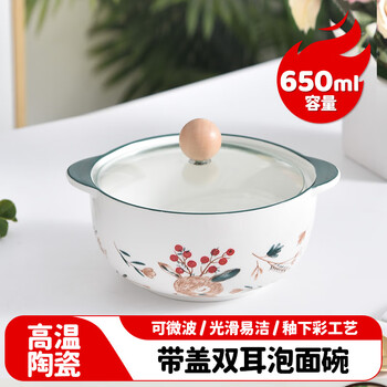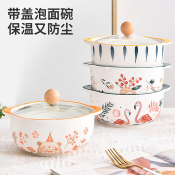 美厨(MAXCOOK)陶瓷碗泡面碗 陶瓷碗日式碗家用汤碗面碗饭碗 带盖 MCFT3899
