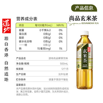 道地(TAO-TI)尚品系列 玄米茶0糖0卡0脂肪0热量绿茶玄米茶 500ml*15瓶整箱