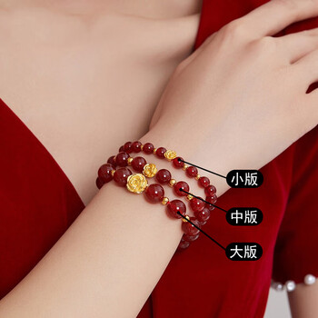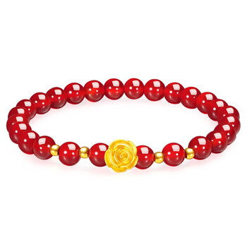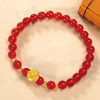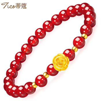蒂蔻(Tico)时尚足金玫瑰花金珠黄金转运珠手链女3d硬金红玛瑙手串生日礼物