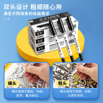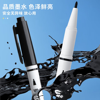 离草双头记号笔勾线笔细杆笔绘画描边速干水性物流标记涂鸦笔 黑色12支装