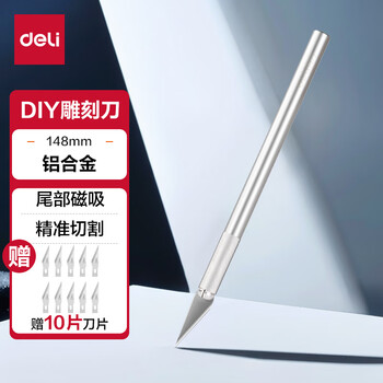 得力(deli)DIY刻纸雕刻刀美工刀手工剪纸刻刀橡皮章学生文具纸雕模型刀具雕花笔刀148mm 银色2102