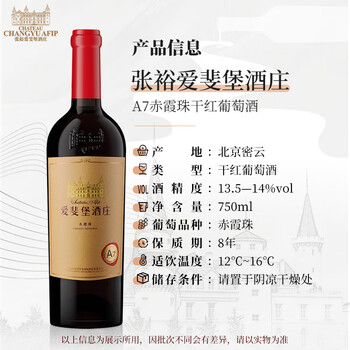 张裕(CHANGYU)爱斐堡(A7)赤霞珠干红葡萄酒 750ml单支木盒装