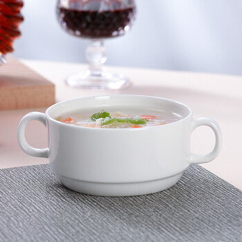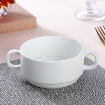 斯凯绨(Sky Top)碗西餐汤盅双耳汤碗陶瓷儿童蒸蛋碗骨瓷纯白酒店家用4英寸2件套装