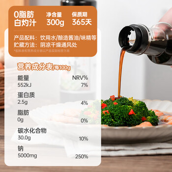 云山半0脂肪白灼汁300g 白灼菜心西兰花虾凉拌汁酱油轻食蔬菜沙拉健身餐