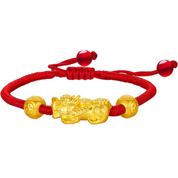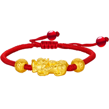 周六福黄金转运珠男女貔貅红绳手绳生日礼物定价AD171272金重约1.96g