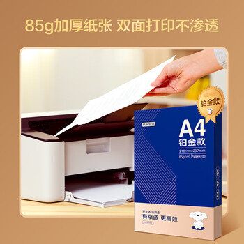 京东京造A4打印纸 85g复印纸 铂金系列 双面高档打印复印纸 500张*5包/箱(2500张)【碳中和认证】