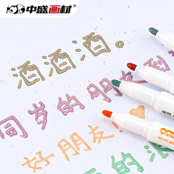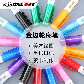 中盛画材(transon)8色双线轮廓笔金属标记笔闪光啫喱笔手帐彩绘专用金线笔加粗双色美术写生