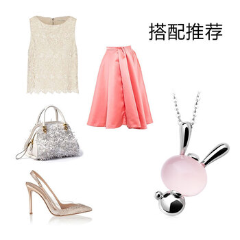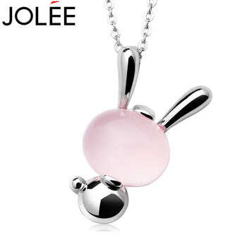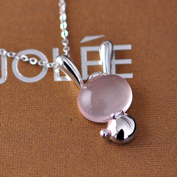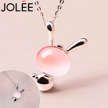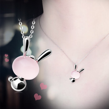 JOLEE项链粉水晶S925银十二生肖兔吊坠锁骨链饰品送女生礼物一物一证