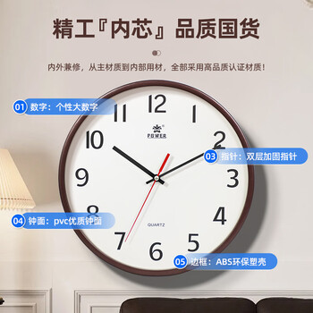 POWER霸王挂钟客厅挂墙时钟简约家用石英钟表25cmBW239517D5