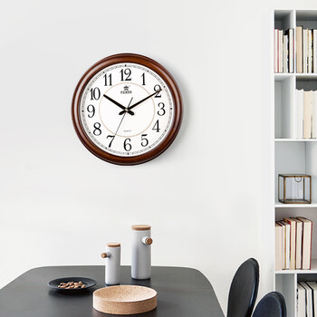POWER霸王实木挂钟 中式简约时钟创意挂墙电子钟客厅38cm 1893DKS1