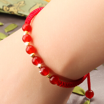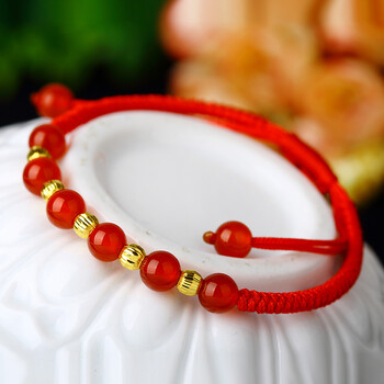 红色年轮黄金路路通转运珠红绳手链五福玛瑙送女友送长辈母亲节生日礼物