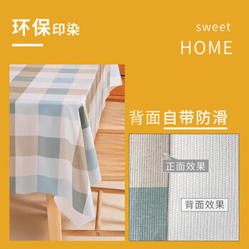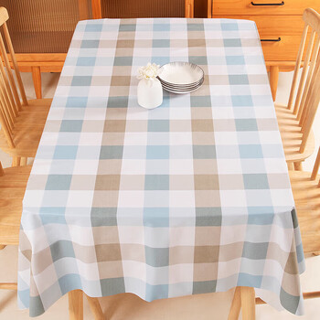 钟爱一生桌布防水防油免洗加厚PVC餐桌布茶几宿舍书桌布 蓝咖大格90*137cm