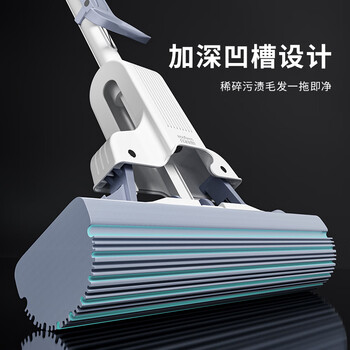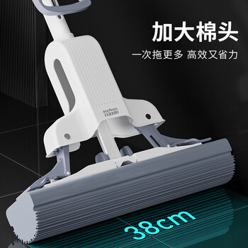 百家好世胶棉拖把38cm1头对折挤水拖把免手洗海绵吸水地拖地神器家用擦地