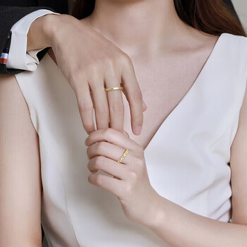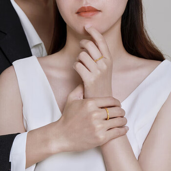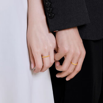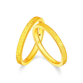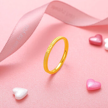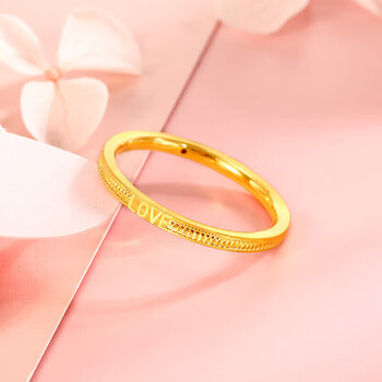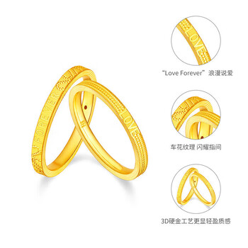 梦金园 黄金戒指足金字母love情侣对戒forever婚戒素圈戒指硬金