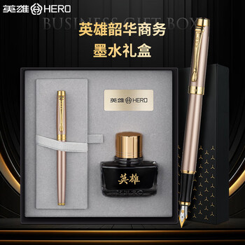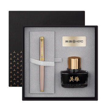 英雄(HERO)钢笔 礼盒【韶华系列】男女商务个性铱金钢笔高端日常书写礼物墨水套装金粉