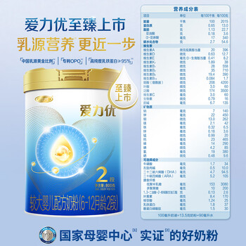 爱力优较大婴儿配方奶粉2段(6-12个月)800g/罐