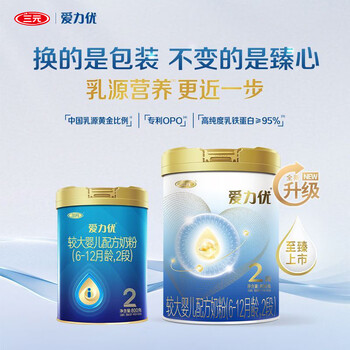 三元 A2奶源 爱力优至臻较大婴儿配方奶粉2段(6-12个月)800g/罐
