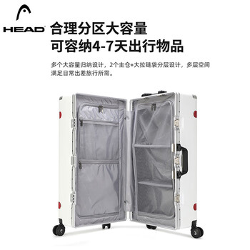 海德(HEAD)行李箱男学生铝框拉杆箱女密码箱旅行箱子 白红色30英寸