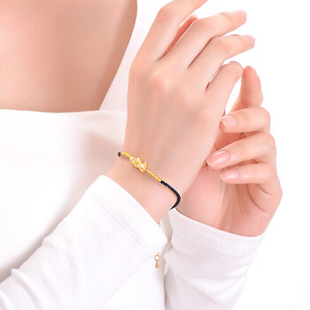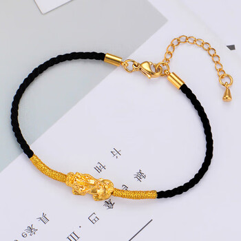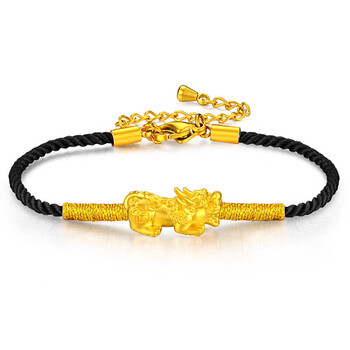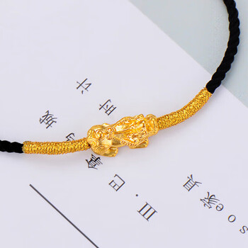 蒂蔻(Tico)足金招财貔貅黄金转运珠手链男女3D硬金编织黑绳手饰品生日礼物