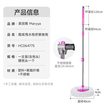 美丽雅旋转拖把不带桶替换单拖把共2拖布多款通用一拖净免手洗干湿两用