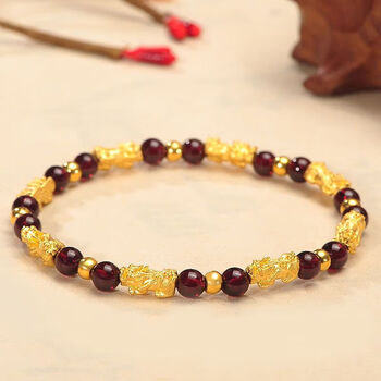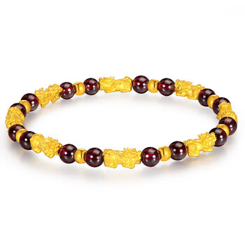 蒂蔻(Tico)八方来财足金招财貔貅黄金转运珠手链女3D金石榴石手串生日礼物