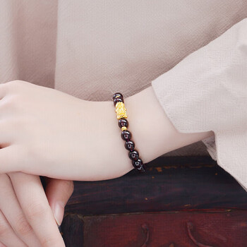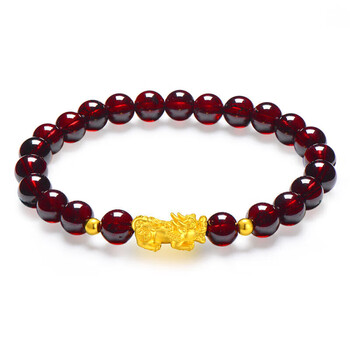 蒂蔻(Tico)足金招财貔貅黄金转运珠手链女士3D硬金石榴石手串饰品生日礼物