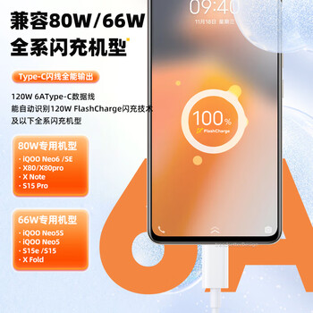 trendsetter适用于vivo数据线120W闪充6A快充type-c充电线x200/x200pro/mini/x100s /iqoo13/12/12pro/Neo9