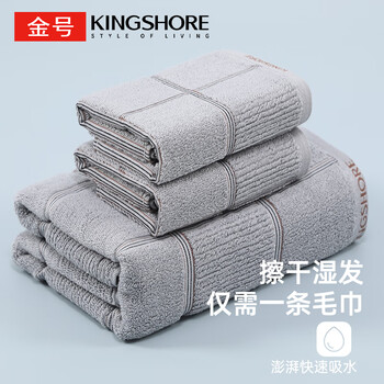 金号浴巾礼盒 纯棉洗脸巾浴巾三件套 洗澡吸水浴巾 灰色
