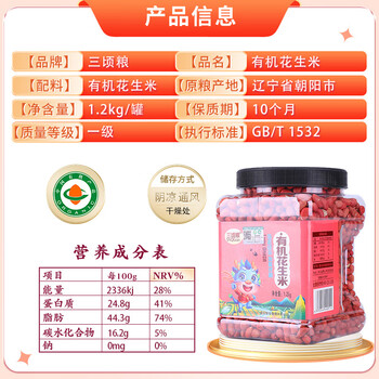 三顷粮有机红皮花生米2.4斤/罐(东北四粒红 大粒生花生仁 五谷粗杂粮)