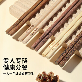 玉米 实木筷子家用分人分用木头一人一筷家庭公筷分餐筷子套装一人食