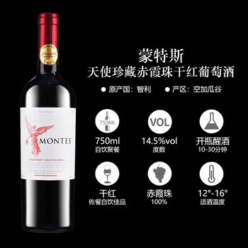 蒙特斯【蒙特斯年货商品推荐】红天使珍藏赤霞珠干红葡萄酒750ml*6 智利