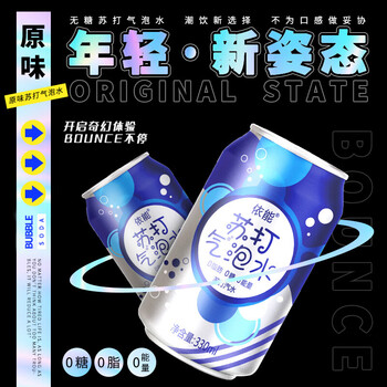 依能 原味 苏打水汽水饮料 无糖气泡水 0卡0能量 330ml*24罐 整箱装