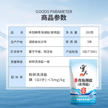 雪天青海湖盐260g 【未加碘】0添加食用盐天然湖盐家用烹饪调味品调料