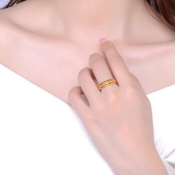 蒂蔻(Tico)足金三生三世黄金戒指男女3d硬金素圈戒指求婚结婚男友生日礼物