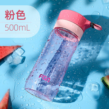 富光户外男女运动水杯塑料水杯便携学生杯子耐摔泡茶提绳粉色500Ml