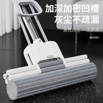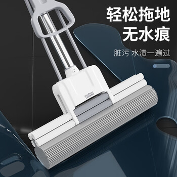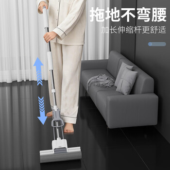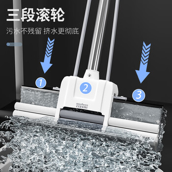 百家好世胶棉拖把38cm1头特大号滚轮胶棉免手洗吸水海绵地拖家用墩布拖