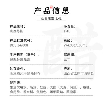 紫林醋4度山西陈醋1.4L酿造食醋凉拌炒菜煲汤蘸食山西特产热门商品