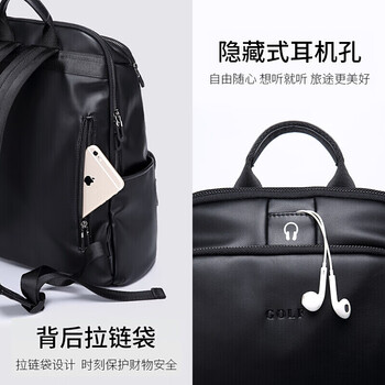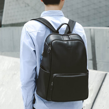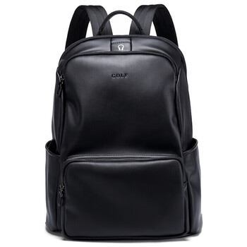 高尔夫(GOLF)双肩包男士软皮商务休闲背包大容量学生书包电脑出差旅行包 黑色