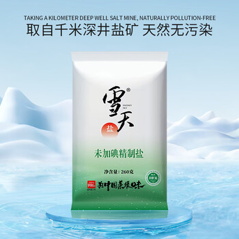 雪天精制盐260g*9【未加碘】深层岩盐食用盐高纯度家用调味品烹饪调料