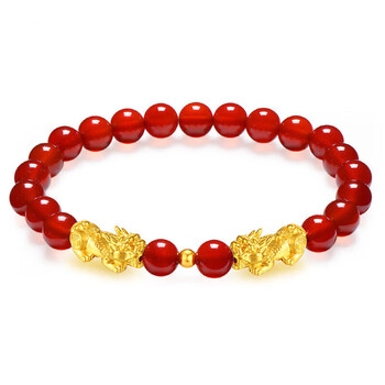 蒂蔻(Tico)招财足金貔貅黄金转运珠手链女3D硬金珠饰品红玛瑙手串生日礼物