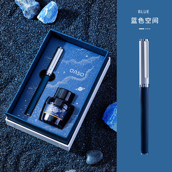 【开学必备】优尚(OASO)钢笔高端星空TB826墨水礼盒学生文具套装中性签字笔蓝色空间铱金明尖墨水笔礼盒