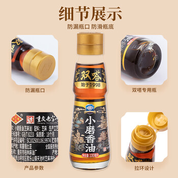 双嗒小磨芝麻油 纯香芝麻油 香油麻油 重庆老字号 100ml 玻璃瓶装