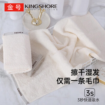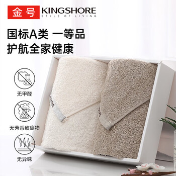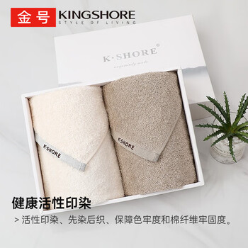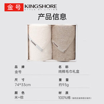 金号毛巾礼盒 A类纯棉毛巾礼盒 纯色毛巾吸水毛巾套装 米+棕2条