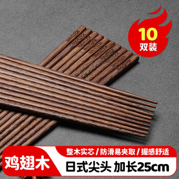 美厨(maxcook)鸡翅木筷子 日式尖头鸡翅木筷 无漆无蜡实木筷子10双装 MCK0638