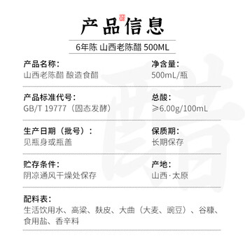 6度山西老陈醋500ml*1