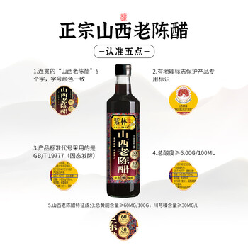 紫林醋6度山西老陈醋500ml6年陈酿0添加防腐剂纯粮酿造山西特产饺子醋